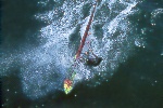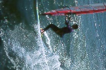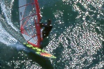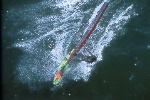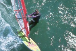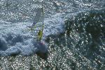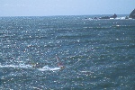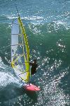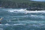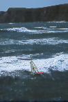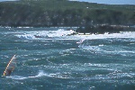 I had spent time looking at the charts, hiking Bodega Head and evaluating the potential of the set up of " The Rock" during a previous photo/info gathering mission. When I learned that someone was making the Actually sailing this break, I was stoked...After making contact with Tom, Will and Dave, we discussed the potential and the pratfalls. We agreed to proceed cautiously. Weeks of frustration ensued. The timing of the waves and wind were not kind. Hours upon hours of communication and anticipation netted nothing. Finally a break. A 10-12' swell and NW winds predicted on a weekend...I raced north and met the 3 Amigos' and head to a vantage point from the Bluffs. I knew it was a long shot, but we were committed. The 1st sailor in range was Will. He tempted fate just south of the rock on his way out and was met by a12 foot close-out slammer. I watched in horror and his rig was swept away. I had no communications, and even though the Coast Guard has it's station a mile from Will and his plight, there was no way of connecting. I watched set after set roll over Will and push his equipment away, as he struggled to catch it. Finally in the lee of the island, Will did catch up, and high tailed it back to Doran Beach.