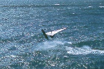 The protective harbor has also provide a training ground for many a north bay windsurfer, cutting teeth in side and eventually moving outside of the relative safety of the harbors lee shore. I was introduced to three such characters, who had gone on to push the envelope a tad farther, last year, by Chris and Annie McNiel- 2 hardcore sailors from Forestville. The 3 Amigos, Will Cramer, Dave Lorenz and Tom Gray, had been making jaunts out to and sailing the break around " The Rock". A square mile of desolate earth, separated from Bodega Head by the constant pounding and churning of the icy Pacific. It's sole inhabitants, consist mainly of feisty gang of seals, sea lions and gulls. Lurking below the surface, a species of fish growing to 18 feet in length, with a big appetite and a poor sense of humor.