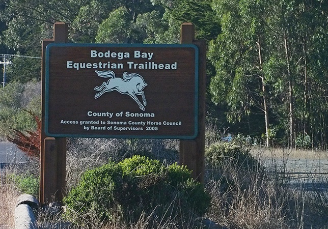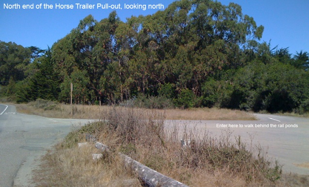 Location aliases: None. Local birders call these the “Bodega Bay Rail Ponds” or simply the “Rail Ponds.” The horse trailer pull-out near the rail ponds acquired a new sign in 2015 (photo below). It appears to be officially called the “Bodega Bay Equestrian Trailhead.” With the new sign, that name may stick, but most birders call the dirt pull-out the “horse trailer pullout.”