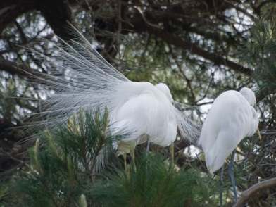Great Egrets in high breeding plumage, Ninth St. Rookery, Santa Rosa, April 16, 2011