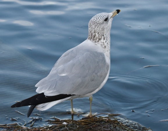 Adult Ring-billed Gull, winter plumage. This bird is unusual, as it shows no white spots on the primaries.
