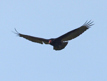 Our only vulture. Common throughout Sonoma County (and most of the United States), and one of our most common birds. Hardly a day goes by without seeing one overhead--sometimes five or six or more--wheeling in slow circles over a road kill or other potential meal. Eats carrion and refuse.