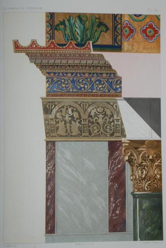 De Vogüé's pl. 22 (Figure 4) shows a segment of this frieze as entirely golden, which is less plausible than that it had a colored background in his day.