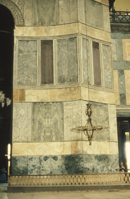 31. De Vogüé attributed all the marble decoration to Sulaymān, op. cit., pp. 83 and 95, where he gave his idea of the chronology of the interior decoration: originally it was all mosaic, the Crusaders replaced some of it with figural paintings, Ṣalāḥ al-Dīn expunged those paintings and installed some decoration, and at the time of Sulaymān that decoration was thought out of harmony with the rest and was replaced with what we see now (marble); but he cited no stylistic reason.