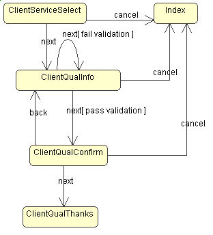 | Controller | Java servlet named <StateName>Servlet.java | Handle control flow between pages. |