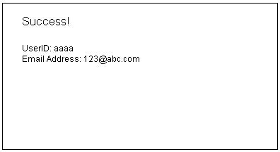 "When the username is really valid, hitting submit should take them to a success page which shows the userID and the email address of that user."