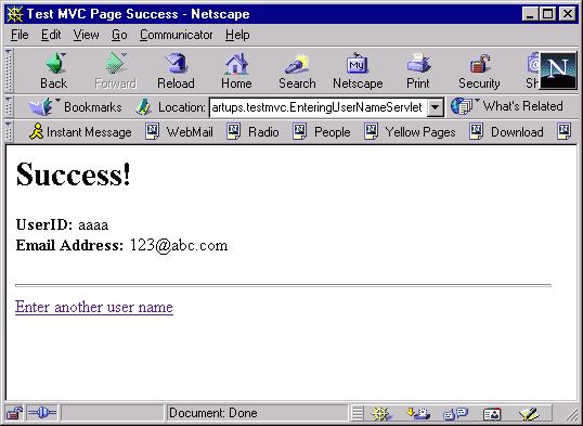 "When the username is really valid, hitting submit should take them to a success page which shows the userID and the email address of that user."