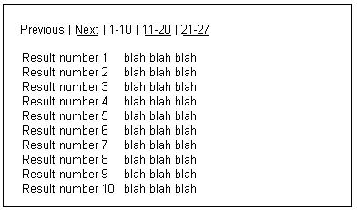 provide links for next, previous, and results 1-10, 11-20, etc. The