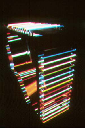 Mirrorized,polished aluminum,'neon',TTL computer. The observer of the work controls its program via TTL logic computer:7,200 functions.