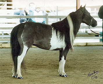 "BB" is a lovely double bred daughter of Reserve National Grand Champion, Shadow Oaks Paul Bunyan. She has won AMHR Reserve National Champion 30-32" Senior Mares,National Top Ten (3td) in Liberty& (3td) Pleasure Driving mares plus AMHA top tens and many Grand Champions in Halter and Driving. "BB" may be a senior citizen but she can still hold her own in any liberty class and probably win, drive with style, make a great youth horse in showmanship, and prance with the best of them in parades. She also is gentle for kid "pony" rides but has a little to much fire to make a driving horse for a timid beginner. She is too great a horse to retire her to a grassy field. Her get also have her style and action. They have won Res National GrCh Park, Regional Champion Liberty & Formal Park, Top Tens(5ths) in halter, supreme champions and many GrChs. Her half brother is National Grand Champion, Shadow Oaks Top Banana. Her grand daughter, Porcelain Doll, has won National Top Tens, Honor Roll and Supreme Champions and her grandson, Dream Makers Black Tie, who has won many National titles including AMHA Res.National Pleasure Driving Grand Champion. DOB: 8-23-82 Golden Pennys Prince Charming Shadow Oaks Paul Bunyan (32.5) Little Tex Fancy (32.75) Shadow Oaks Glory B (31.5) Shadow Oaks Paul Bunyan (32.5) Shadow Oaks Firefly (34) Dream Size |