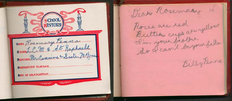 Rosemary's grammar school autograph book with sample page.