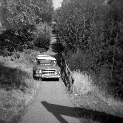 Driving on Arch Street Most likely one of the periodic clean-out-the-basement occasions, and Father's backed the Rambler all the way up to the bottom of the steps to load up for a trip to the dump. I kept expecting the police to come along and hassel us. Unlikely, though, since these were still the days when everybody knew everybody. Before the basement became so crowded with non-disposable items as to make it impractical, we could empty it completely every so often and hose the whole thing out. |
