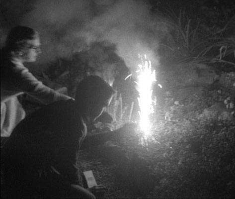 Mother and Paul down in the front yard, in front of the fish pond.