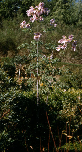 The tree dahlia uniquely remarkable, though, as it actually did grow to the size of a small tree. Here it must be around fifteen feet high. Unfortunately, that spectacular height was also literally its downfall as, more often than not, the winds toppled it over before it was able to blossom. Seeing it like this, in November 1956, was a rare event. |