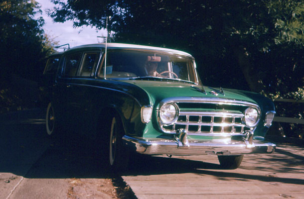| The Rambler September 1956. Photographer: Will. 35mm Ektachrome slide. The month after we got it; the registration is still taped to the windshield, as was the custom in those days. At the age of 10, I pitched the idea of buying the Rambler to Father, sitting him down with brochures, specs and doing a hard-sell. Hudson and Nash had merged to become American Motors, so ours was actually a Hudson Rambler. The white roof was a dealer-applied extra; I'm not sure whose idea that was. Click here to see the Arch Street News issue reporting on the great event. |