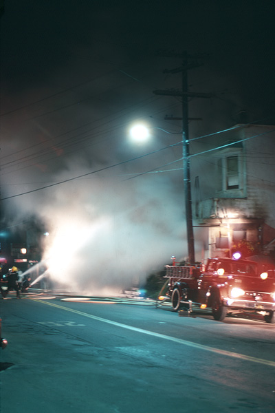 February 2, 1970 The rickety old Brazil building at 557 Magnolia just north of the Lark Theater burned down in a spectacular fire in 1970. In the early days of the 20th century the bottom floor held an establishment called the Larkspur Bar. That was long gone by the time of the fire, when the lower floor was occupied by professional offices. |