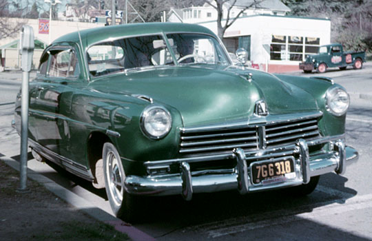 The Hudson in San Rafael, c.1954. Paul and Father are in the front seat; the blue map is in the glove compartment.