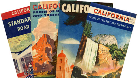 When I discovered gasoline station road maps, I don't know. Perhaps it was the blue-on-white map of San Francisco that was always in the Hudson. Eventually, each stop for gas had me pestering the attendant for a map. These being the days, of course, when such things as gas station attendants and free road maps had not yet become the things of which legends are made. A gas station attendant was the person Father always said, "ten ethyl" to, then nodded sagely when shown the dip stick.