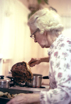 Mother cooking the Christmas Dinner. By the time the second shot was taken, she'd changed into her dinnertime dress.